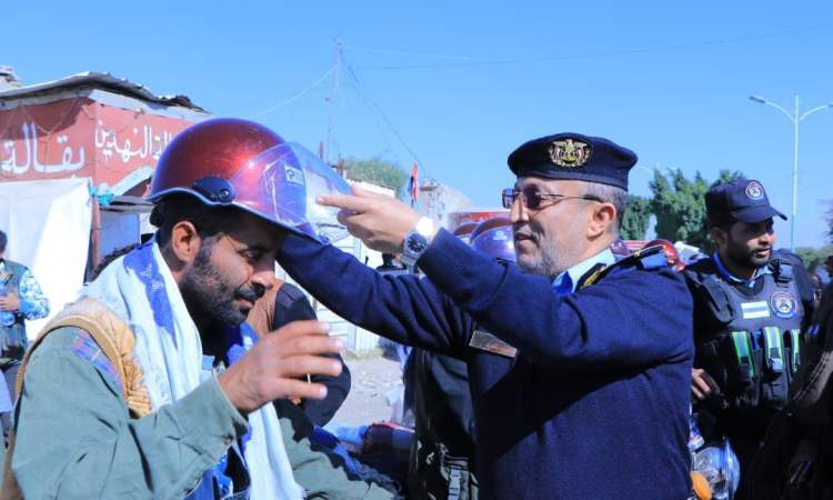 دشن مدير شرطة المرور اللواء الدكتور بكيل البراشي، ومعه مدير مرور الأمانة العميد نجيب الأسدي اليوم مبادرة توزيع الخوذ على سائقي الدراجات النارية في عدد من الشوارع والتقاطعات الرئيسية بالأمانة.