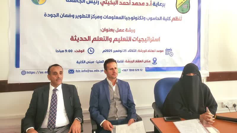 عُقدت بجامعة صنعاء اليوم ورشة علمية بعنوان “استراتيجيات التعليم والتعلم الحديثة”، نظمتها كلية الحاسوب وتكنولوجيا المعلومات ومركز التطوير وضمان الجودة بالجامعة.