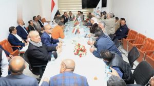 عقد اجتماع في مقر الغرفة التجارية والصناعية بأمانة العاصمة، ضم وزير المالية عبدالجبار أحمد، والقائم بأعمال وزير الاقتصاد والصناعة والاستثمار سام البشيري وقيادة الغرفة وعددا من التجار والمصنعين.