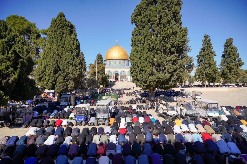 عشرات آلاف الفسطينيين يؤدون صلاة الجمعة في المسجد الأقصى وباحاته