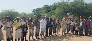 ورفع المشاركون في الوقفة، بمشاركة قيادات محلية وتنفيذية، العلمين اليمني والفلسطيني، مرددين شعارات الجهاد والمقاومة والبراءة من الأعداء والخونة وعملاء الصهاينة والامريكان.