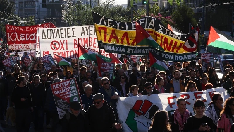 شهدت العاصمة اليونانية أثينا، اليوم السبت، مظاهرة تضامنية مع فلسطين بمناسبة “اليوم العالمي للتضامن مع الشعب الفلسطيني”، وللمطالبة بوقف العدوان الإسرائيلي على الفلسطينيين.