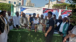 وفي الحفل، أكد وكيل محافظة الحديدة لشؤون الخدمات محمد سليمان حليصي أن اليمن زاخر بالمواهب والأبطال في مختلف الألعاب الرياضية، مشيراً إلى أن استضافة الحديدة للبطولة تعكس روح التلاحم والمحبة بين أبناء الوطن، في ظل قيادة تسعى لصناعة الانتصارات وتعزيز الحضور الرياضي.