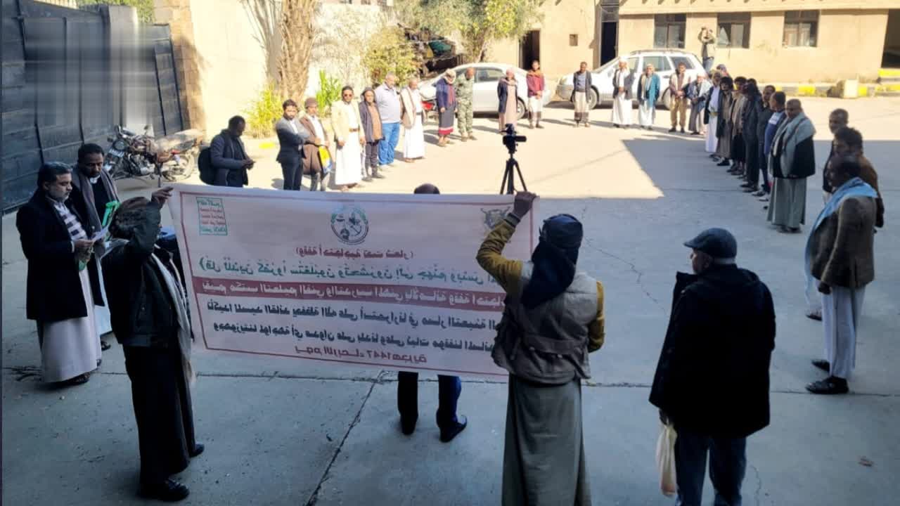 نظم منتسبو قطاع التعليم الفني في أمانة العاصمة اليوم، وقفة تأكيدا على استمرار الموقف الثابت المساند للشعب الفلسطيني.