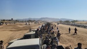 جاء ذلك في وقفة قبلية مسلحة حاشدة، نُظمت اليوم تحت شعار “وفاءً لدماء الشهداء وثباتاً على الموقف .. قبائل اليمن تعلن استمرارها في التعبئة وجهوزيتها العالية”.