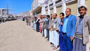 نظمت التعبئة العامة في عزلة الرسول الأعظم بمديرية سنحان وبني بهلول، محافظة صنعاء اليوم، وقفة قبلية مسلحة إعلانًا للجهوزية الكاملة والاستعداد لأي جولة قادمة أو تصعيد للعدو الأمريكي الاسرائيلي على اليمن والشعب الفلسطيني.