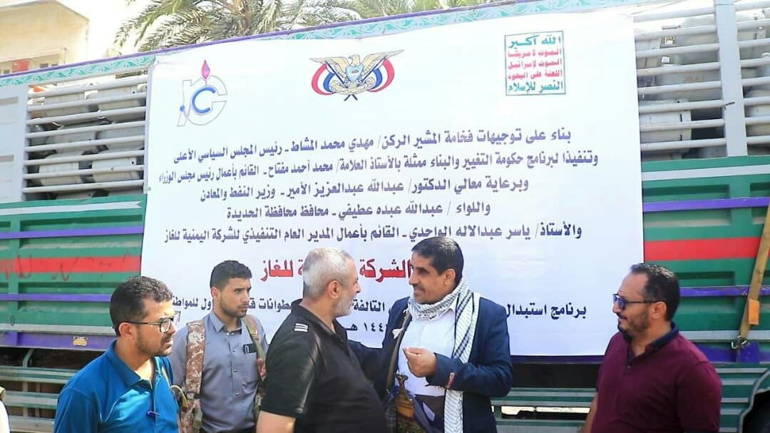 دشن وكيل اول محافظة الحديدة احمد البشري ومعه وكيل المحافظة لشؤون الخدمات محمد حليصي والقائم بأعمال المدير التنفيذي للشركة اليمنية للغاز ياسر الواحدي اليوم، برنامج استبدال أسطوانات الغاز المنزلي التالفة والمتهالكة بأسطوانات قابلة للتدوال للمواطنين بعموم مديريات المحافظة.
