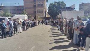 وفي الوقفات التي نظمها ديوان الأمانة، وصندوق ومشروع النظافة، والمسالخ، والزكاة، والصحة، والتعليم الفني، والوحدة التنفيذية لإنشاء وصيانة الطرق، والمؤسسة المحلية للمياه والصرف الصحي، والحدائق، والمالية، والأشغال، والنقل، والتربية وفروعه بالمديريات، والاقتصاد والصناعة، والأوقاف، والاتصالات، والبريد، والسياحة والثقافة، والزراعة، والأراضي، والضرائب، والكهرباء، والشباب، والخدمة المدنية، والشؤون الاجتماعية، والنفط، والتأمينات، والبيئة، والموارد المائية، وصندوق الرعاية الاجتماعية، رفع المشاركون العلمين اليمني والفلسطيني.