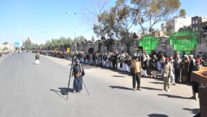 نظم أبناء مديرية شعوب بأمانة العاصمة اليوم، وقفة مسلحة حاشدة تأكيداً على الجهوزية العالية والاستعداد لمواجهة العدو وأذنابه وعملائهم.