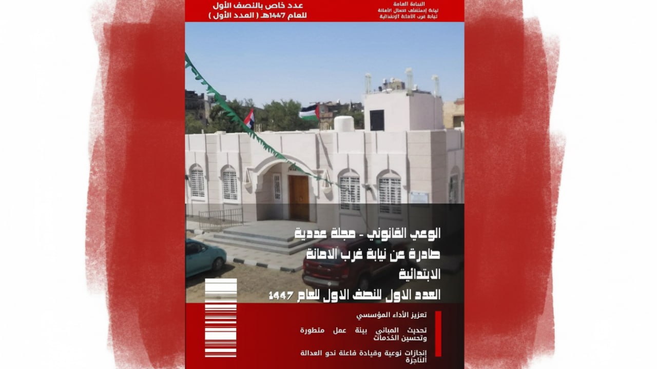 أصدرت نيابة غرب الأمانة بالعاصمة صنعاء العدد الأول من المجلة الإلكترونية “الوعي القانوني”، متضمنة مواد توعوية متنوعة وتصميمًا فنيًا ومهنيًا جذابًا يخدم المحتوى.