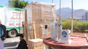 وعقب التدشين، جرى توزيع منظومات الطاقة الشمسية على المستفيدين في مديرية حزم العدين عبر الجمعية التعاونية الزراعية بالمديرية.