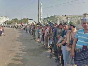 نظم أبناء مديرية الحالي بمحافظة الحديدة اليوم الاثنبن، وقفة قبلية مسلحة تأكيدًا على استمرار التعبئة والاستعداد لمواجهة أي تصعيد قد تقدم عليه قوى العدوان، تحت شعار “جهوزية واستعداد.. والتعبئة مستمرة”.