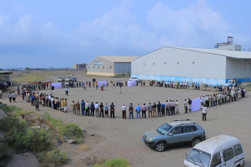 نظمّت قيادة وموظفو مؤسسة موانئ البحر الأحمر اليمنية والقطاعات العاملة في ميناء الحديدة، صباح اليوم الاربعاء، وقفة احتجاجية تنديدًا بالإساءة الأمريكية الممنهجة لكتاب الله تعالى.