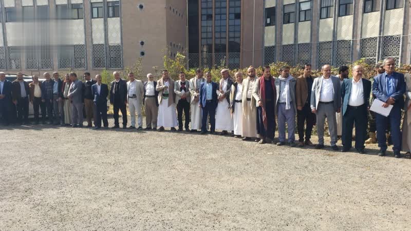 نظم منتسبو وزارة الاقتصاد والصناعة والاستثمار، وقفة احتجاجية اليوم، تنديدا بجريمة الإساءة الأمريكية للقرآن الكريم.