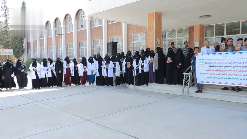 نظّمت قيادة وكوادر مستشفى السبعين للأمومة والطفولة في أمانة العاصمة، اليوم، وقفة احتجاجية غاضبة تنديدًا بجريمة الإساءة الأمريكية للقرآن الكريم تحت شعار ” غضبا ونصرة للقرآن الكريم كتاب الله المجيد”.