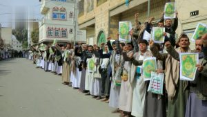 وردد المشاركون الهتافات الغاضبة والرفض القاطع لهذه الإساءة الأمريكية الوقحة، محملين الولايات المتحدة الأمريكية ومعها بريطانيا والعدو الصهيوني، المسؤولية الكاملة عن هذه الإساءات المتكررة التي تعكس عداءً صريحاً للإسلام والمسلمين.