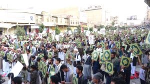 وعبر المشاركون عن الغضب الشعبي من الإساءة للقرآن الكريم، والتأكيد على الالتزام بنصرته، والوقوف إلى جانب القضية الفلسطينية، وربط الموقف من المقدسات بمعركة الأمة مع المشروع الأمريكي الصهيوني.