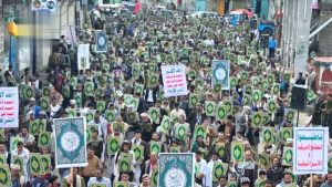 وأشار إلى أن الشعب اليمني خرج اليوم في هذه المسيرات الغاضبة ليعلن موقفه المنطلق من هويته الإيمانية ويسمع العالم الصوت الرافض والغاضب لكل الإساءات الأمريكية الصهيونية المتكررة للمقدسات الإسلامية.. معلنا الرفض القاطع والواضح لأي إساءة أو استهداف له.
