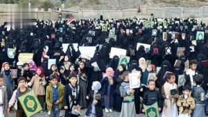 كما دعا نساء يمن الإيمان والحكمة والجهاد إلى مواصلة الحضور المشرف والفاعل في الساحات والوقفات والفعاليات، استجابة لتوجيهات السيد القائد عبد الملك بدر الدين الحوثي “يحفظه الله”، ليصل صوت المرأة اليمنية الحرة إلى العالم، صوتًا رافضًا وغاضبًا ضد الإساءات الأمريكية والصهيونية المتكررة للقرآن الكريم والمقدسات، وتأكيدًا على ثبات الموقف الإيماني في مواجهة الطغيان الأمريكي والإسرائيلي، والمساندة الكاملة للشعب الفلسطيني والاستعداد لمواجهة مخططات ومؤامرات الأعداء التي تستهدف اليمن والأمة.
