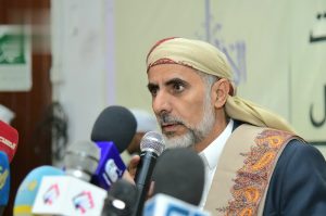 وقال “الحمد لله الذي شرّفنا في يمن الإيمان برفع الراية نيابة عن الأمة والعالم لمواجهة هذا التيار الخبيث، وهيّأ لنا قيادة ربانية حكيمة شجاعة ملهمة تتخذ المواقف المناسبة والقوية في وقتها بقيادة السيد عبدالملك بدر الدين الحوثي”.