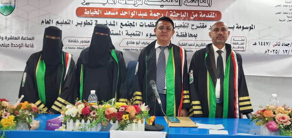 الماجستير بامتياز للباحثة رحمة الخياط في الإدارة وأصول التربية من جامعة إب