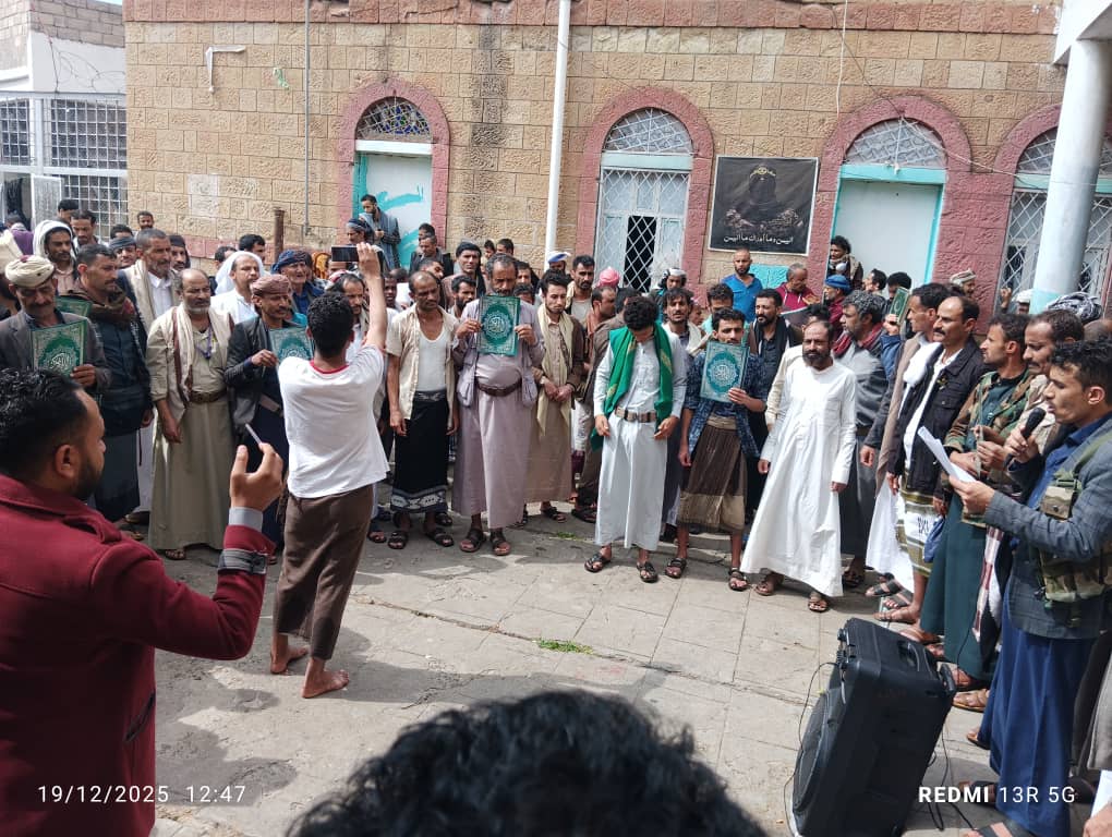 كما نفّذت الإصلاحية المركزية بمحافظة البيضاء وقفة احتجاجية عبّر فيها المشاركون عن إدانتهم الشديدة لهذه الجريمة المشينة، مؤكدين أن القرآن الكريم خطٌ أحمر لا يمكن المساس به تحت أي مبرر، ورفعوا شعارات ولافتات تندد بالإساءة المتعمدة للمصحف الشريف.