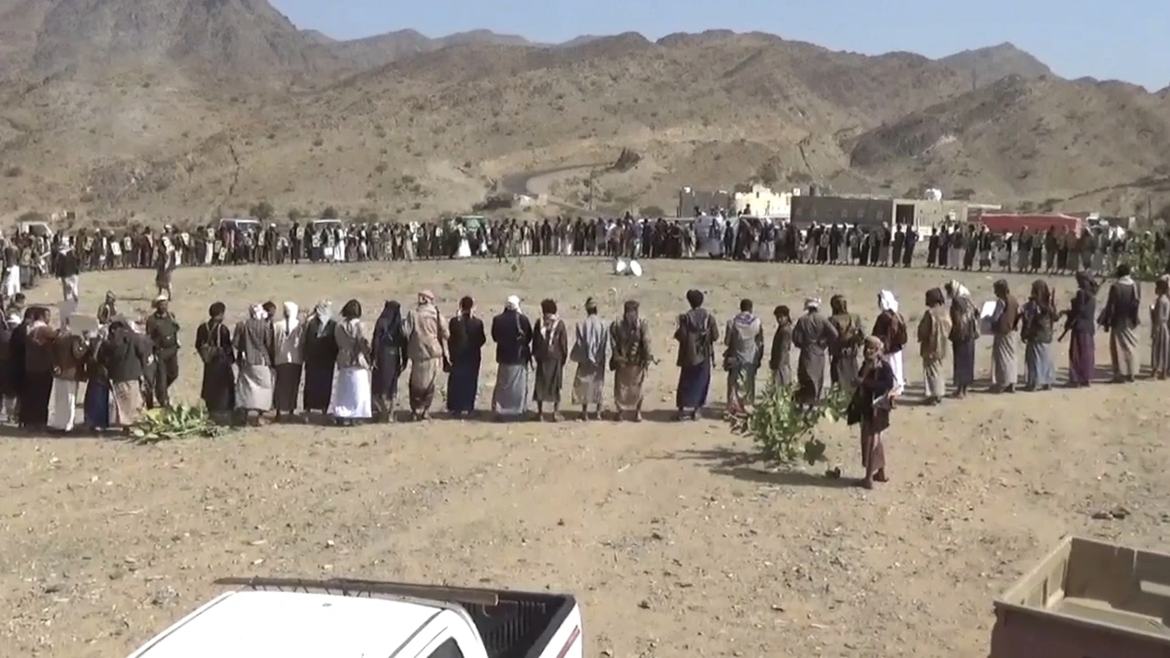 نظمت قبائل مديرية رحبة بمحافظة مأرب، اليوم، لقاءاً قبليا مسلحا، إعلانًا للجهوزية واستعدادًا للجولة القادمة الحتمية من الصراع مع العدو الصهيوني ومرتزقته، وتنديد بالإساءة الأمريكية للقرآن الكريم.