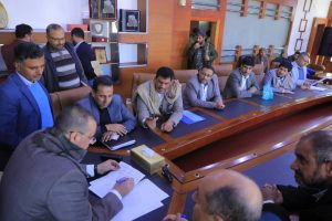 وخلال اللقاء استمع القائم بأعمال وزير الاقتصاد والصناعة والاستثمار ، بحضور نائب وزير الاقتصاد والصناعة والاستثمار احمد محمد الشوتري الى شكاوى وتطلعات الحاضرين ووجه بسرعة البت فيها وفق معالجة منصفة .