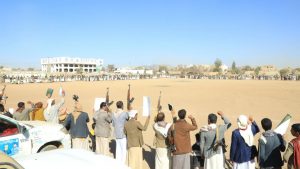نظمت قبائل الحمزات وولد مسعود الشرقية في مديرية سحار بمحافظة صعدة اليوم، وقفة قبلية إعلاناً للجهوزية وتنديدًا بالإساءة الأمريكية للقرآن الكريم.