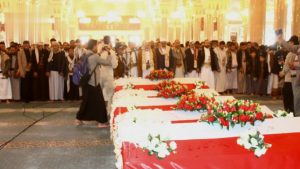 جرت مراسيم التشييع للشهداء بعد الصلاة عليهم في جامع الشعب بأمانة العاصمة ليتم مواراتهم الثرى في روضة الشهداء بمنطقة عصر بأمانة العاصمة.