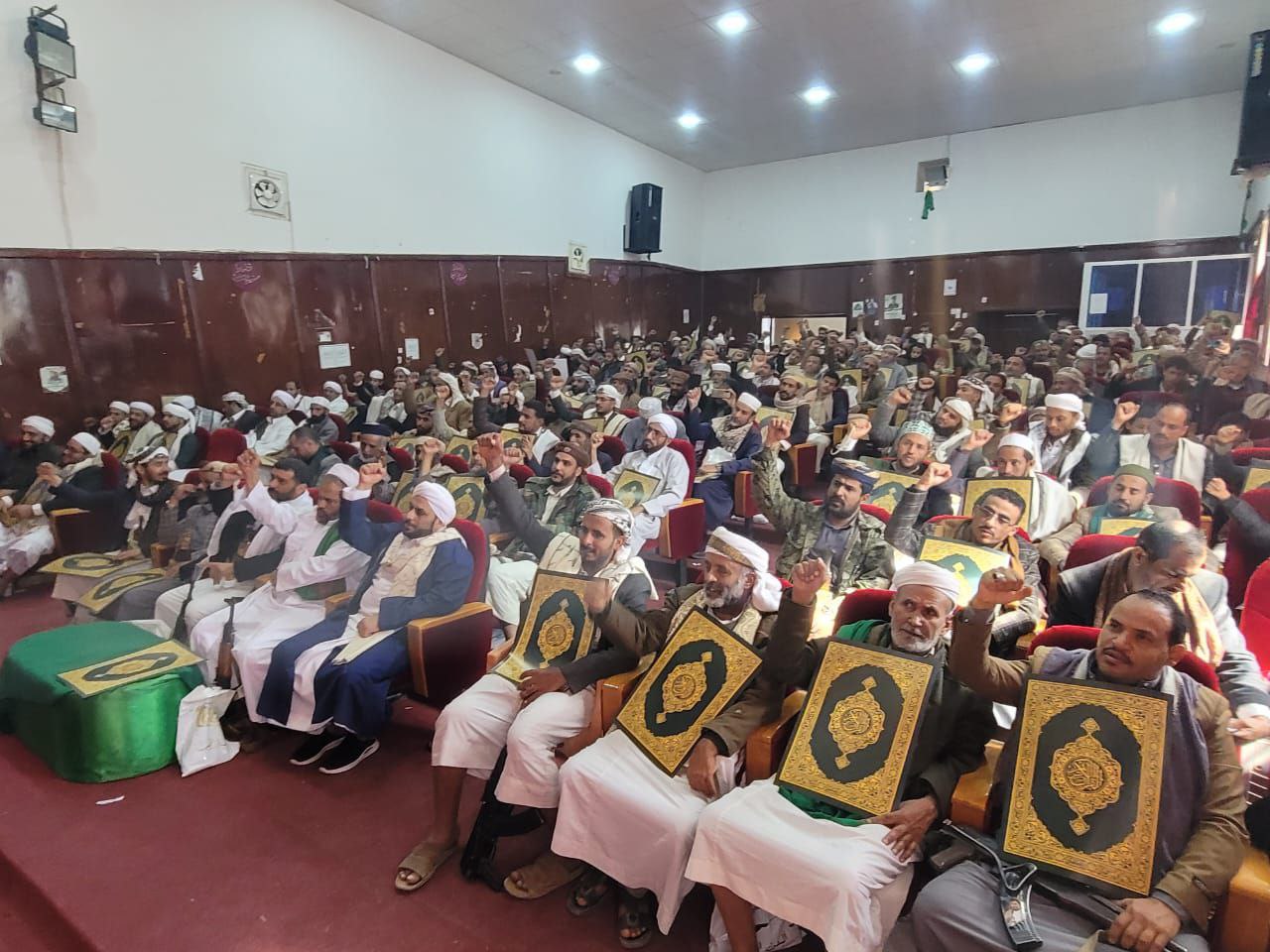 نظّم مكتب الأوقاف والإرشاد ووحدة العلماء والمتعلمين بمحافظة البيضاء، اليوم، لقاءً موسعاً للعلماء والخطباء والمرشدين بمديريات مربع الأول والأوسط، بمناسبة قدوم ذكرى جمعة رجب و انتصارا لكتاب الله ورفضا للإساءة الأمريكية والصهيونية إليه، وتحت شعار “الإيمان يمان والحكمة يمانية”.