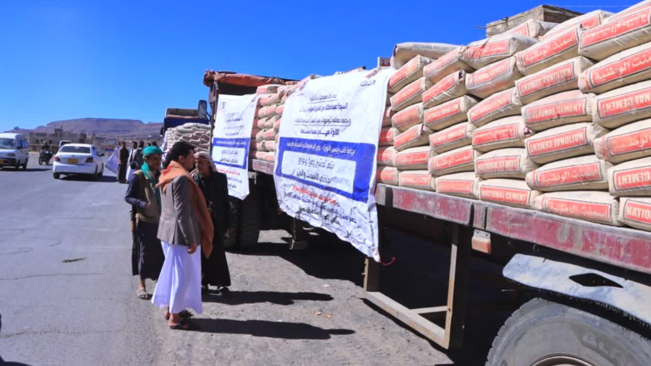 دُشِّن بمحافظة صنعاء، اليوم، توزيع الدفعة الثامنة من مادة الإسمنت والديزل للمبادرات والمشاريع المجتمعية.