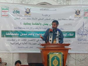 نظّم مكتب الهيئة العامة للأوقاف والإرشاد في محافظة ذمار لقاءً موسّعًا للعلماء والخطباء والمرشدين بالمحافظة، تحت شعار: “الإيمان يمان والحكمة يمانية”، نصرةً للقرآن الكريم وإعلانًا للموقف تجاه الإساءات المتكررة للقرآن من قبل العدو الأمريكي، وترسيخًا للهوية الإيمانية.