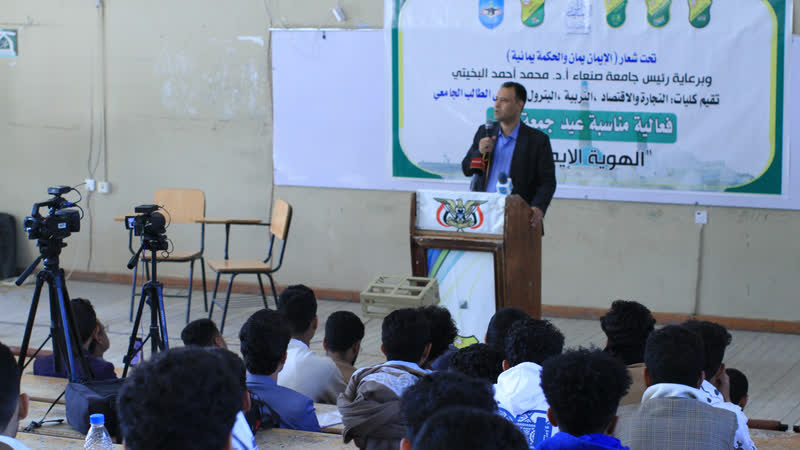 نظمت كليات التجارة والاقتصاد والتربية والبترول بجامعة صنعاء وملتقى الطالب فعالية ثقافية بمناسبة جمعة رجب ذكرى دخول اليمنيين الإسلام وتجسيداً للهوية الإيمانية.