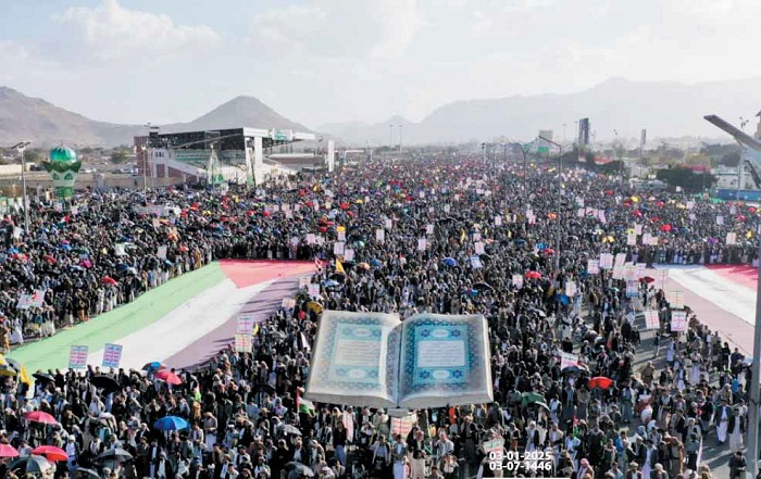 توافد أبناء المحافظات والقرى اليمنية تلبية لدعوة السيد القائد عبد الملك الحوثي، رفضا للسلوك بتدنيس كتاب الله سبحانه وتعالى واستنكاراً لهؤلاء الكفرة ونصرة كتاب الله ورسوله، ونصرة المؤمنين الصادقين الغيورين على كتابهم ودينهم ولكم بالمرصاد يا أنجس العباد .