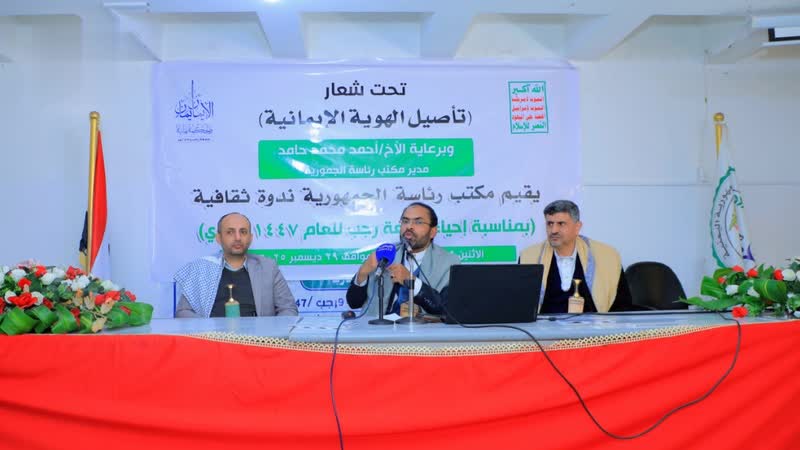نظّم مكتب رئاسة الجمهورية اليوم ندوة ثقافية حول تأصيل الهوية الايمانية بمناسبة عيد جمعة رجب ١٤٤٧هـ.