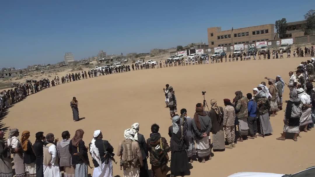 واختُتمت الوقفة بحضور مشايخ وعقال وشخصيات اجتماعية وتربوية وثقافية وخطباء، وممثلي فروع المكاتب التنفيذية والمجالس المحلية، إلى جانب عسكريين وأمنيين، وجموع المواطنين من أبناء وقبائل المديرية، بترديد الهتافات المنددة بالعدوان الصهيوني والمؤكدة الجهوزية لخوض معركة المواجهة حتى تحقيق النصر.
