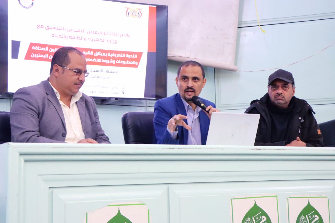 نظّم اتحاد الإعلاميين اليمنيين، بالتعاون مع وزارة الكهرباء والطاقة والمياه، اليوم الثلاثاء ، ندوة تعريفية بميثاق الشرف الإعلامي وأخلاقيات مهنة الصحافة.