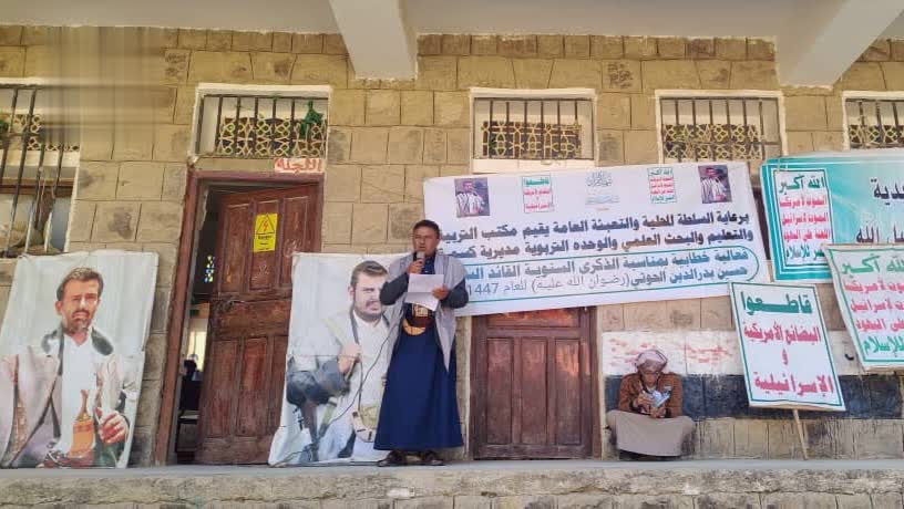 نظم القطاع التربوي بمديرية كسمة محافظة ريمة اليوم فعالية خطابية، بالذكرى السنوية للشهيد القائد حسين بدر الدين الحوثي.