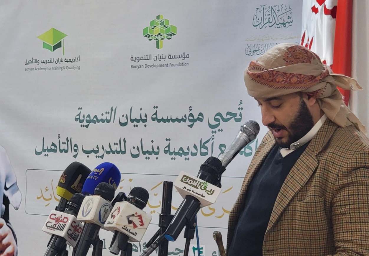 نظمّت مؤسسة بنيان التنموية وأكاديمية بنيان للتدريب والتأهيل، اليوم فعالية خطابية بالذكرى السنوية لشهيد القرآن السيد حسين بدرالدين الحوثي.