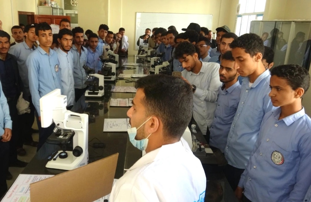 حيث اطلّع الدكتور الحمزي ومدير عام ثانوية المداني نبيل الحجاجي والطلاب على معامل الأنسجة والتشريح والأمراض النسيجية والدم وأبحاثه والصيدلة والفسيولوجي ووظائف الأعضاء والأحياء الدقيقة والبيولوجي والكيمياء الحيوية.