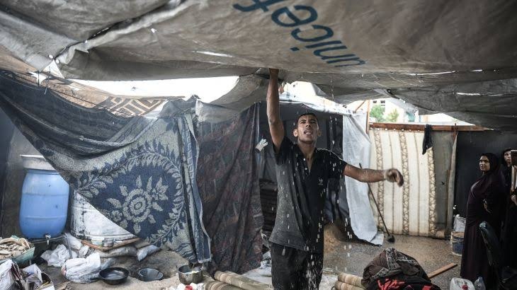 قال المتحدث باسم جمعية الهلال الأحمر الفلسطيني في قطاع غزة، رائد النمس، إن “الأوضاع في القطاع كارثية بكل ما تحمله الكلمة من معنى، ولا سيما مع استمرار المنخفض الجوي، الذي تسببت الرياح العاتية والأمطار الغزيرة المصاحبة له بانجراف الخيام وتضرر العشرات من المواطنين والنازحين الذين يعيشون أصلاً في ظروف إنسانية بالغة الصعوبة”.