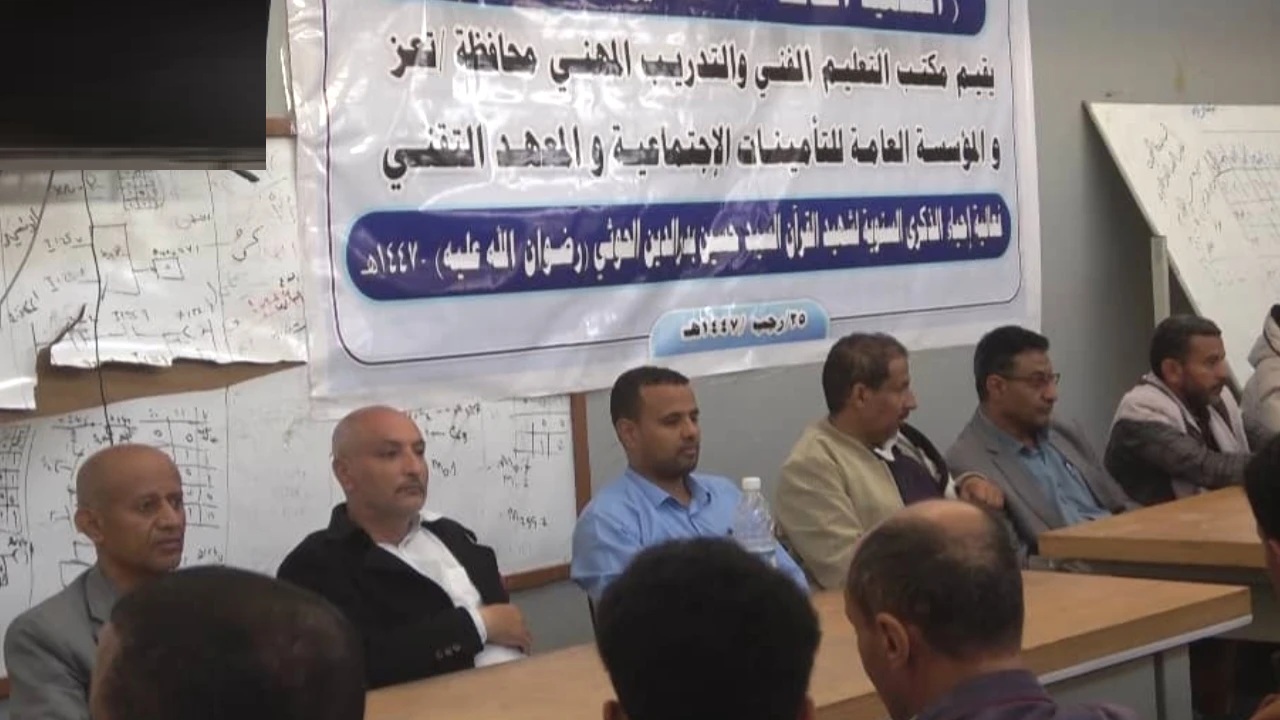 نظّم قطاع التعليم الفني والتدريب المهني، وفرع المؤسسة العامة للتأمينات، والمعهد التقني الصناعي في الحوبان بمحافظة تعز، اليوم، فعالية خطابية إحياءً للذكرى السنوية لشهيد القرآن، تحت شعار “الشهيد القائد.. مسيرة حق وعطاء”.