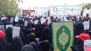 ورددّت المشاركات في الفعاليات والوقفات، هتافات المضي على درب شهيد القرآن السيد حسين بدر الدين الحوثي وشعارات “في درب شهيد القرآن نقلع شر الأمريكان” و”بالقرآنِ والشعار سنواصل هذا المسـار” و”دربنا درب الجهاد لن نرضى بالاستبعاد” و”خِيرة قادتنا شهداء زادونا عزة وإباء” و “مشروع شهيد القرآن مشروعٌ من الرحمن”.