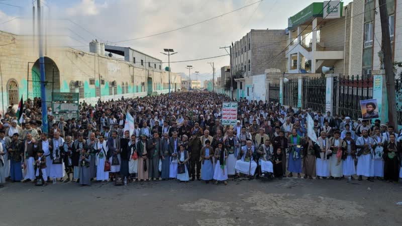 وأشار البيان إلى أن الشعب اليمني بعد أن وفقه الله تعالى بهذه المسيرة القرآنية وبالمواقف المشرفة مع غزة العزة وقضايا الأمة وتوفيق الله فيه من اذلال وهزيمة لطواغيت الأرض وفراعنة العصر “أمريكا وإسرائيل”، فإنه يقدّم المشروع القرآني كحل عملي وكمشروع وحدوي ونهضوي وحضاري متكامل لشعوب الأمة العربية والإسلامية في زمن غابت وتلاشت وفشلت فيه كل المشاريع الأخرى وتحت كل العناوين.