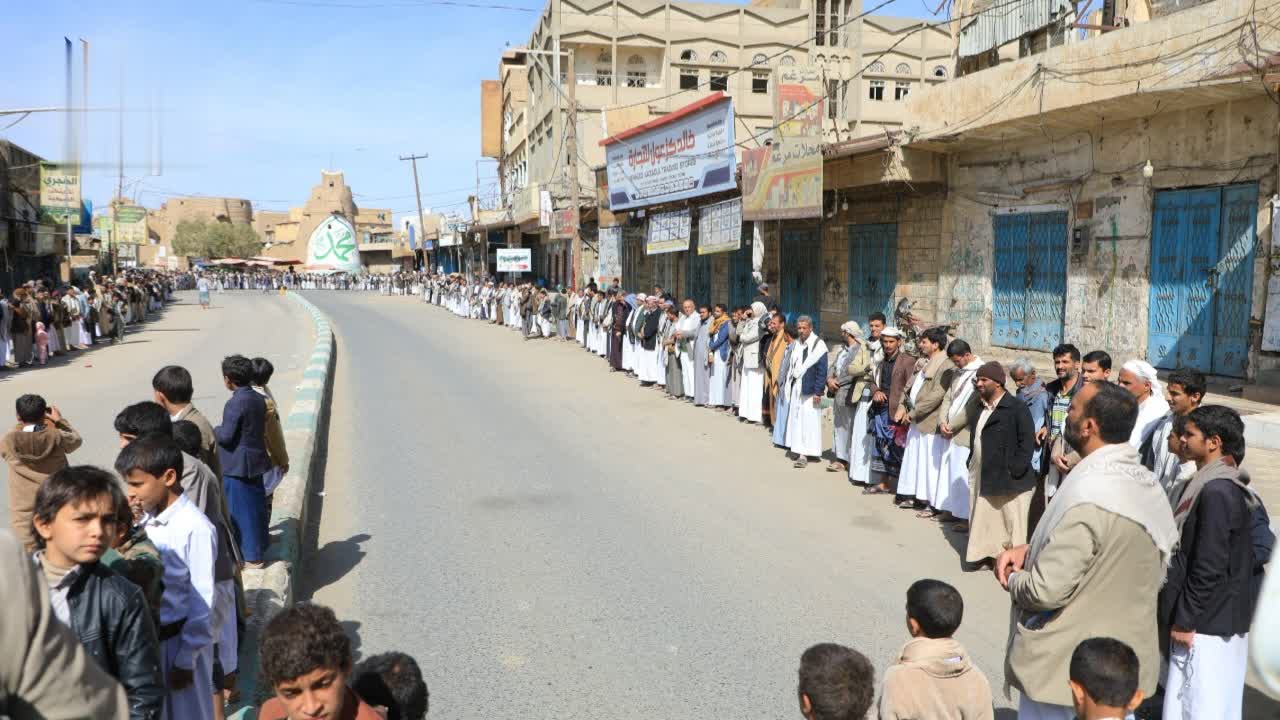 وأعلن أبناء المحافظة الاستمرار في النفير والتعبئة العامة وتعزيز الجاهزية استعدادا لأي جولة صراع مع أعداء الإسلام أمريكا وإسرائيل وعملائهم ومرتزقتهم.