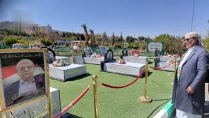 عقب ذلك، زار عضو السياسي الأعلى روضة شهداء حكومة التغيير والبناء، وقرأ الفاتحة على أرواحهم، مؤكدًا أن تضحياتهم ستثمر حريةً وعزةً وكرامةً للشعب اليمني.
