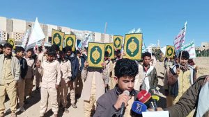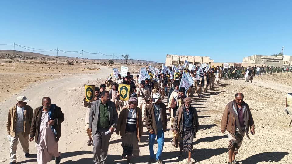 نظّم خريجو المرحلة الثالثة من دورات “طوفان الأقصى” في مدارس التعليم الثانوي بمديرية مكيراس في محافظة البيضاء، اليوم، مسيرًا راجلاً، ضمن فعاليات التعبئة العامة الهادفة إلى تعزيز الوعي المجتمعي وترسيخ مبادئ الصمود وتزامنًا مع الذكرى السنوية لشهيد القرآن.