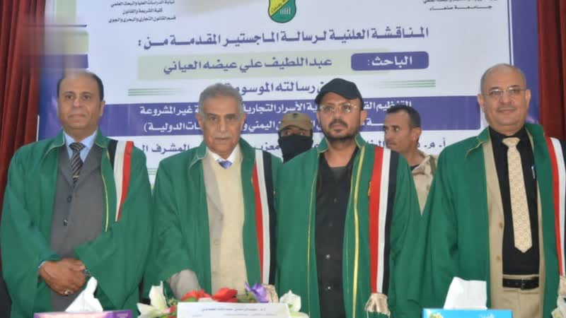 حصل الباحث عبداللطيف علي عيضة العياني اليوم على درجة الماجستير بامتياز في مجال القانون من جامعة صنعاء عن رسالته الموسومة بـ “التنظيم القانوني لحماية الأسرار التجارية من المنافسة غير المشروعة .. دراسة مقارنة في القانون اليمني والاتفاقيات الدولية”.