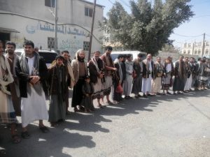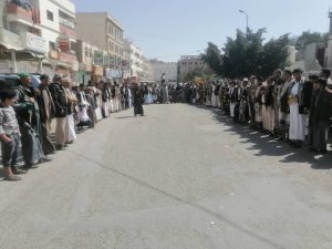 نظم أبناء وقبائل محافظة البيضاء اليوم، عقب صلاة الجمعة، وقفات شعبية حاشدة في مديريات المحافظة، تحت شعار “على خطى الصماد مستعدون للجولة القادمة” ومع إحياءً للذكرى السنوية للشهيد صالح الصماد وتأكيداً على التمسك بمشروعه في مواجهة قوى الاستكبار العالمي، وإسناداً للشعب الفلسطيني.